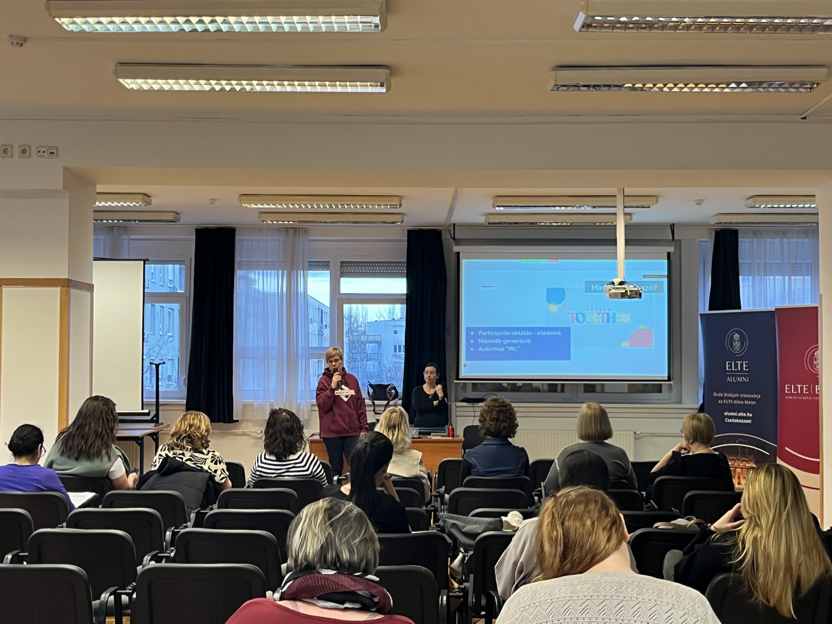 A 2025/26 tanév 4. Bárczi-(gyógy)tea 2026. február 12-i rendezvényén Dr. habil. Perlusz Andrea dékánhelyettes asszony köszöntötte a személyesen és online megjelent közel 80 főt számláló hallgatóságot és ismertette a félév következő Gyógy(tea) alkalmainak témáját. Az ELTE Közösségépítő Iroda munkatársának távollétében, ismertette az iroda célkitűzéseit, közelgő eseményeit és a különböző támogatói kampányok lehetőségeit is.