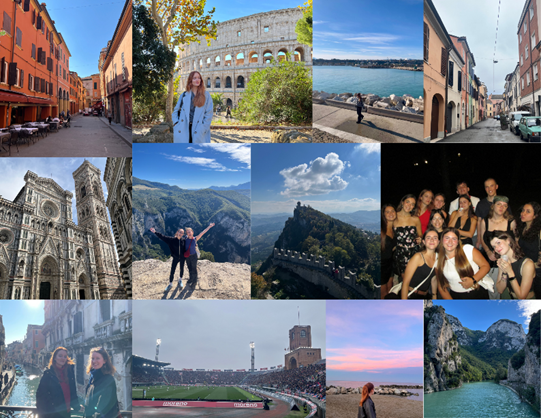 Természetesen elutaztam a nagyobb városokba is, mint Róma, Bologna, Velence (ahova a karnevál idején utaztunk), Firenze és San Marino. Olaszországban bárhova utazik az ember, az biztos, hogy gyönyörű lesz, és ezt saját szememmel tapasztalhattam. Bologna lett a kedvenc olasz városom, amit gyakran az olasz gasztronómia fővárosának is neveznek. A város kevésbé zsúfolt, mégis sok a látnivaló, a híres árkádok pedig nagyon különleges hangulatot adnak a városnak. Itt volt lehetőségem elmenni egy olasz futballmérkőzésre is, ami szintén hatalmas élmény volt.