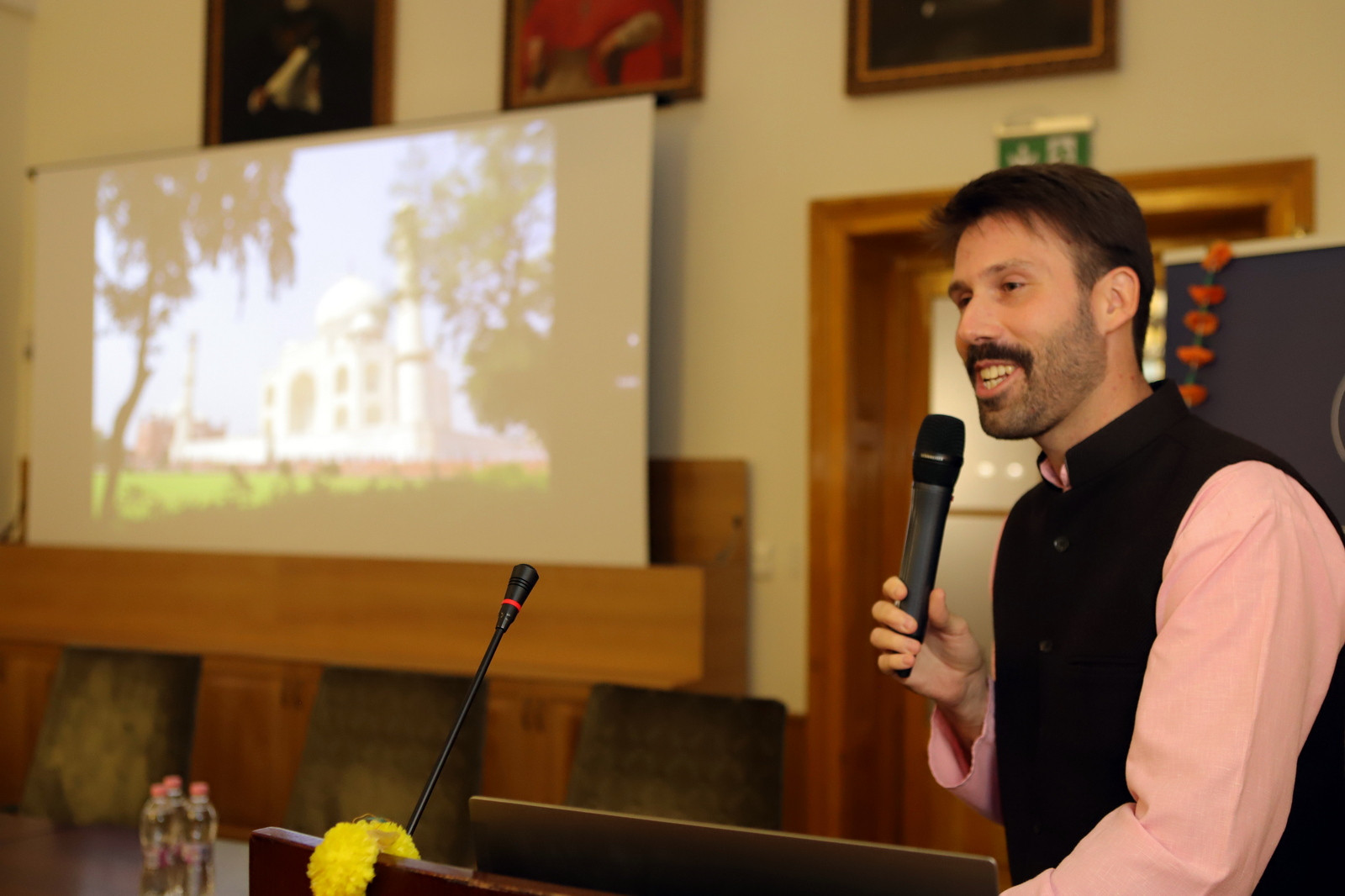 Ezután három előadásra került sor. Először Sági Péter (BTK '09, '12, '17) egyetemi adjunktus tartott fényképes élménybeszámolót Indiában tett utazásairól, majd Dávid Krisztina (BTK '12), az ELTE BTK Indológia Tanszék megbízott előadója "Rendszer a káoszban: Magyar-indiai interkulturális hasonlóságok és különbségek" címmel mesélt az indiai közlekedési szokásokról, a kint szerzett tapasztalatairól, és arról, hogy ebben hogy tükröződik vissza az indiai emberekre jellemző mentalitás. Négyesi Mária (BTK '76, '77) ny. egyetemi docens, az ELTE BTK Indológia Tanszék korábbi vezetője az indiai ünnepekről, azok közül is elsősorban a dasheráról és Durgá púdzsáról, valamint a díválíról osztott meg részleteket a hallgatósággal.