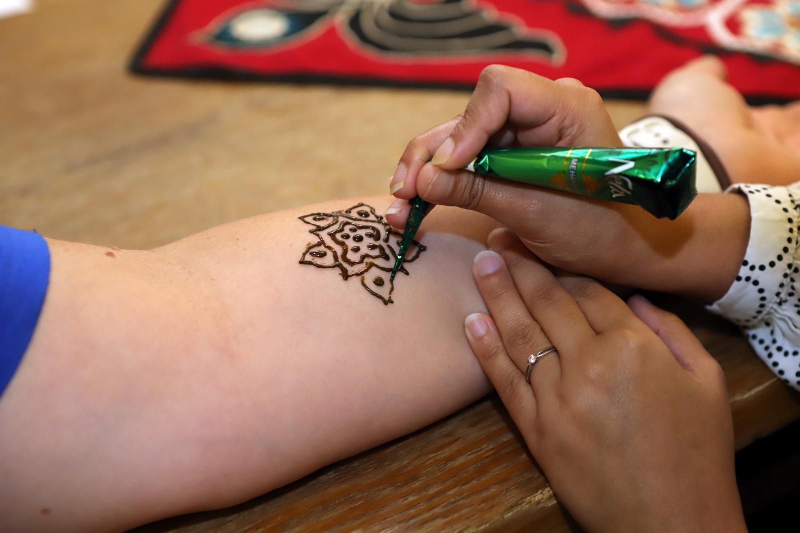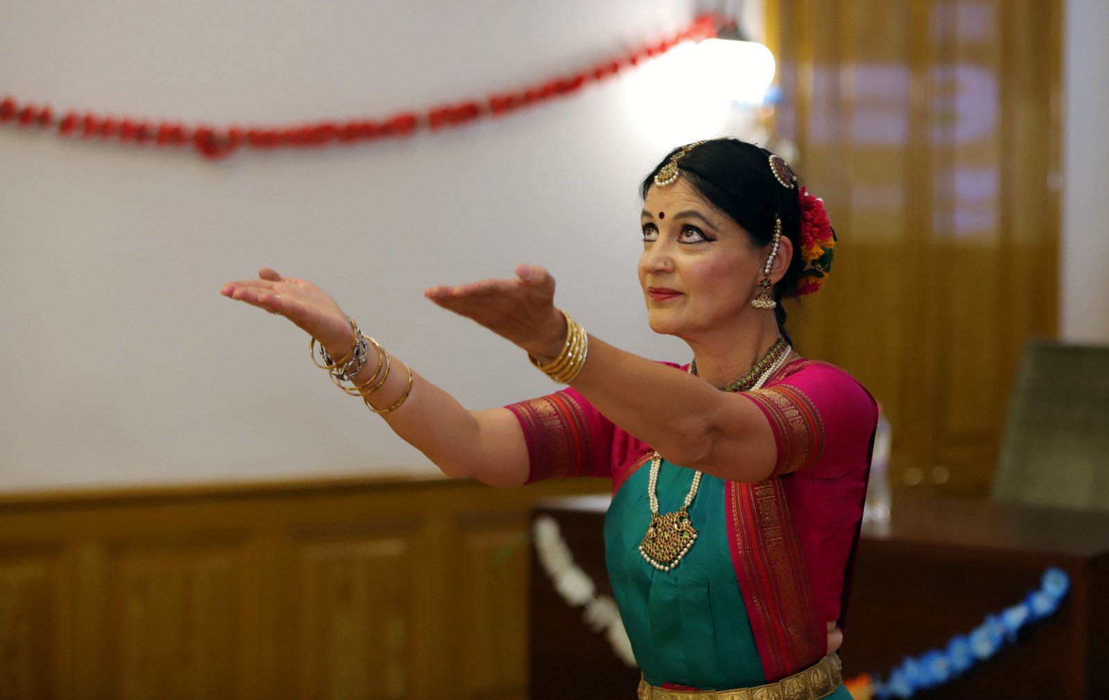 Az este Somi Panni (BTK '92) indológus, bharatanátjam táncos, koreográfus, a Sivasakti Kalánanda Táncszínház vezetője lehengerlő produkciójával folytatódott. A táncelőadás két részből állt, melynek második felében a tánc formájában elmesélt történetet először szóban hallhattuk Dávid Krisztina tolmácsolásában. A vastapssal kísért fellépést követően különböző aktivitásokat lehetett a helyszínen kipróbálni, úgymint jóga, hennafestés, indiai ruhák és ékszerek bemutatója és próbája, valamit a dévanágarí írás. Köszönjük ez utóbbiakban az Amrita Sher-Gil Indiai Kulturális Központ és munkatársai közreműködését. Az esemény végén egyúttal lehetőség nyílt kötetlenül beszélgetni egymással és az előadókkal.
